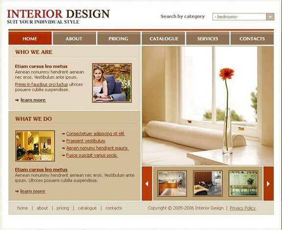 1、典雅家具大圖放置中央,襯托整個(gè)網(wǎng)站的高貴。